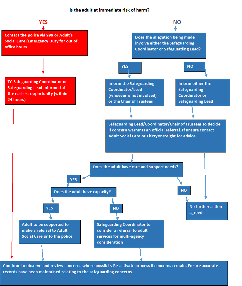 These flow charts provide an overview of action to be taken when concerned about the welfare of a child or adult. They are to be used in conjunction with written procedures.